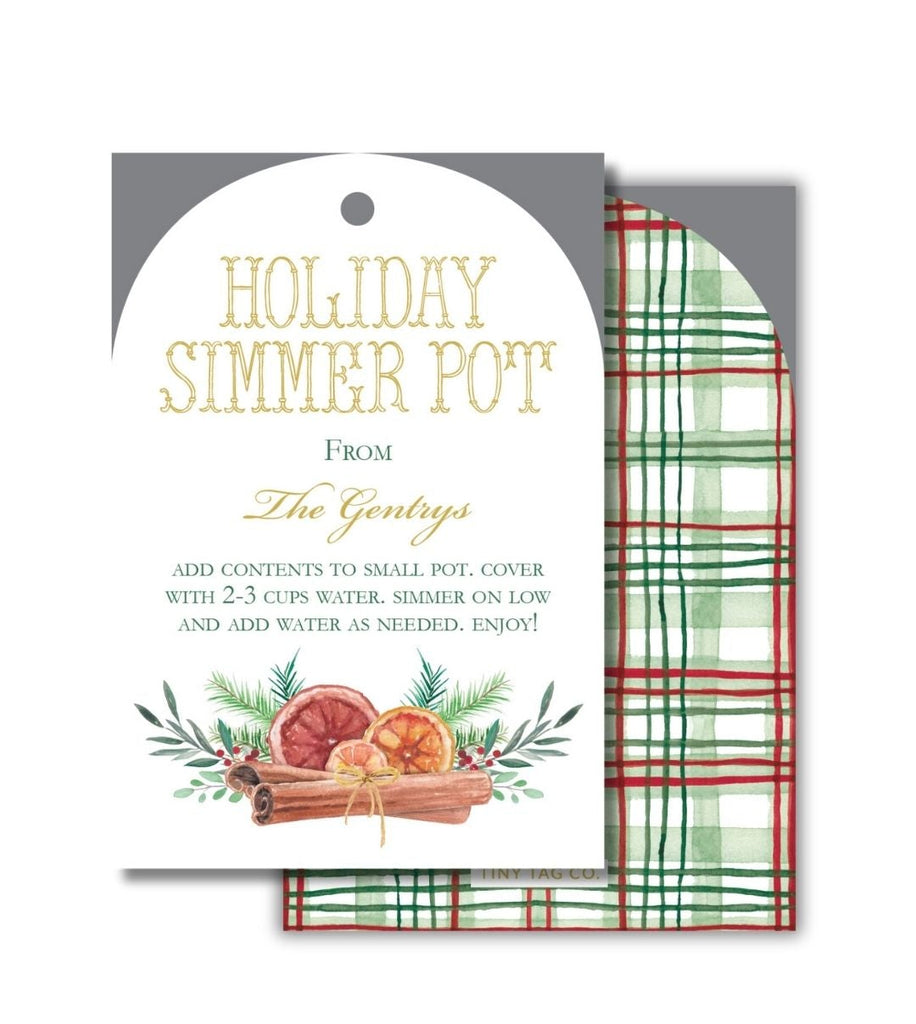 These fun tags are double sided and come with string but we suggest adding a fun coordinating ribbon to make this Tiny Tag shine even more. Check our Amazon shop here for lots of fun ribbon ideas. We've also linked several simmer pot essentials here if you prefer a semi-homemade gift this season.